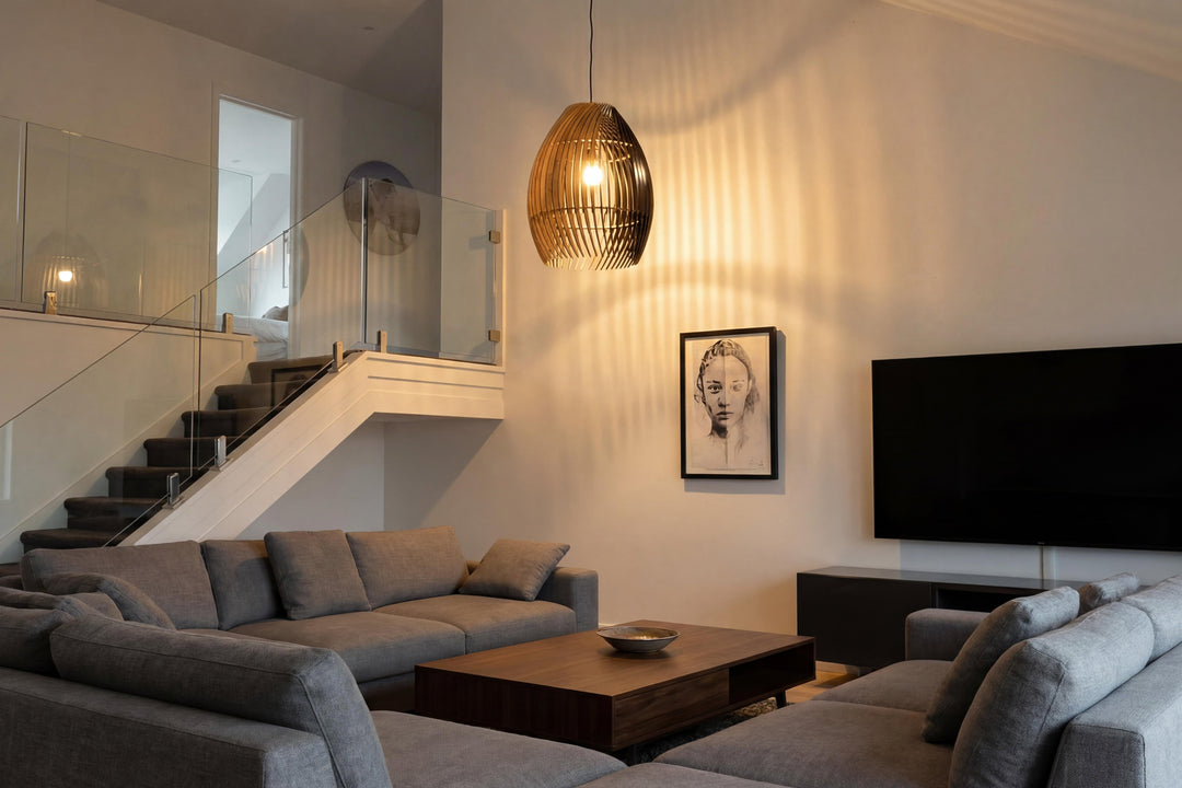 The Tussock Light shade is a statement piece in any living room, elevating any space with refined beauty. The obsidian hue beautifully contrasts with the warm glow of the light, creating an enchanting ambiance.